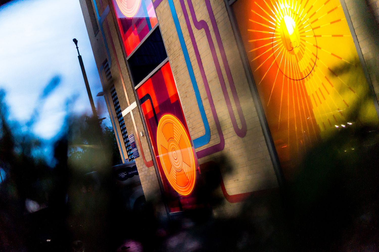That’s where Martin came in. The artist is well known for his empathy towards the everyday spaces people occupy, and demonstrates an incredible understanding of the ephemeral qualities of light – a characteristic that’s especially true in urban spaces. He skilfully plays with any surfaces that are to hand, and in this case, we worked on everything from bricks and vent grilles to large 4 metre glass panels.