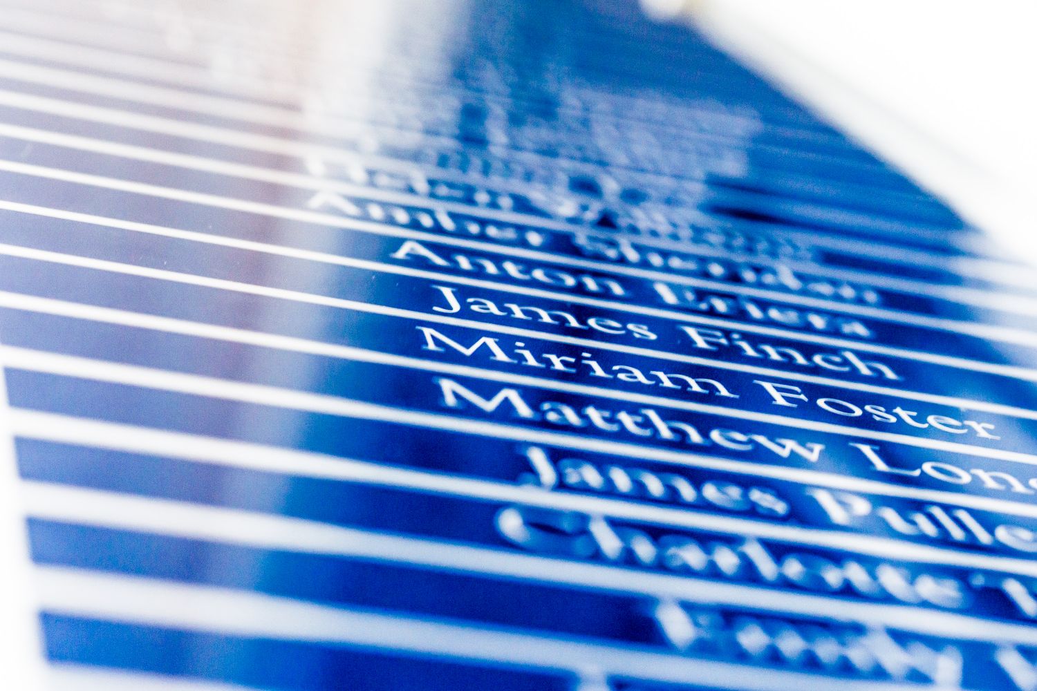 Now we simply print out the list and apply it to the back of glass, which is then affixed to the wall outside of each chamber using minimalist stand off fixings, for a clean look that stays true to the classic style of the buildings.