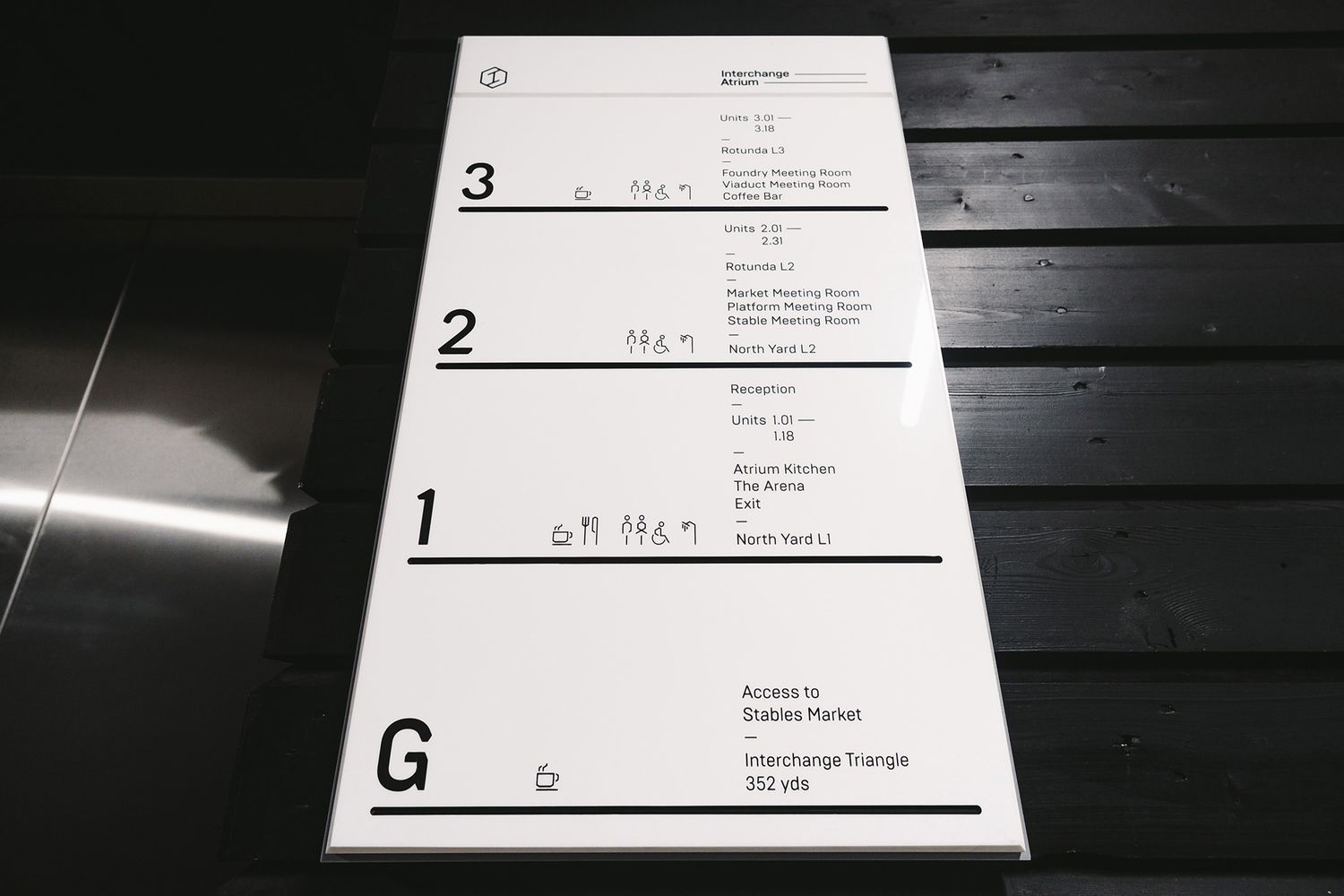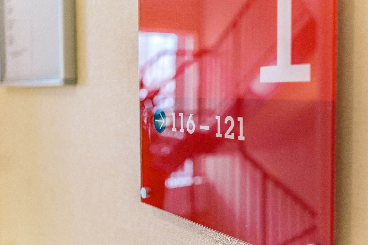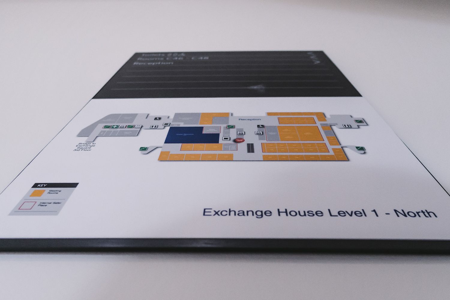 Glazed plexiglass boards or plaques made by mounting printed vinyl onto the back of clear acrylic panels - offering the same premium scratch resistant feel as glass while remaining affordable, this type of sign is highly replicable no matter the scope of the brief, manifesting as office directories and room identifiers.