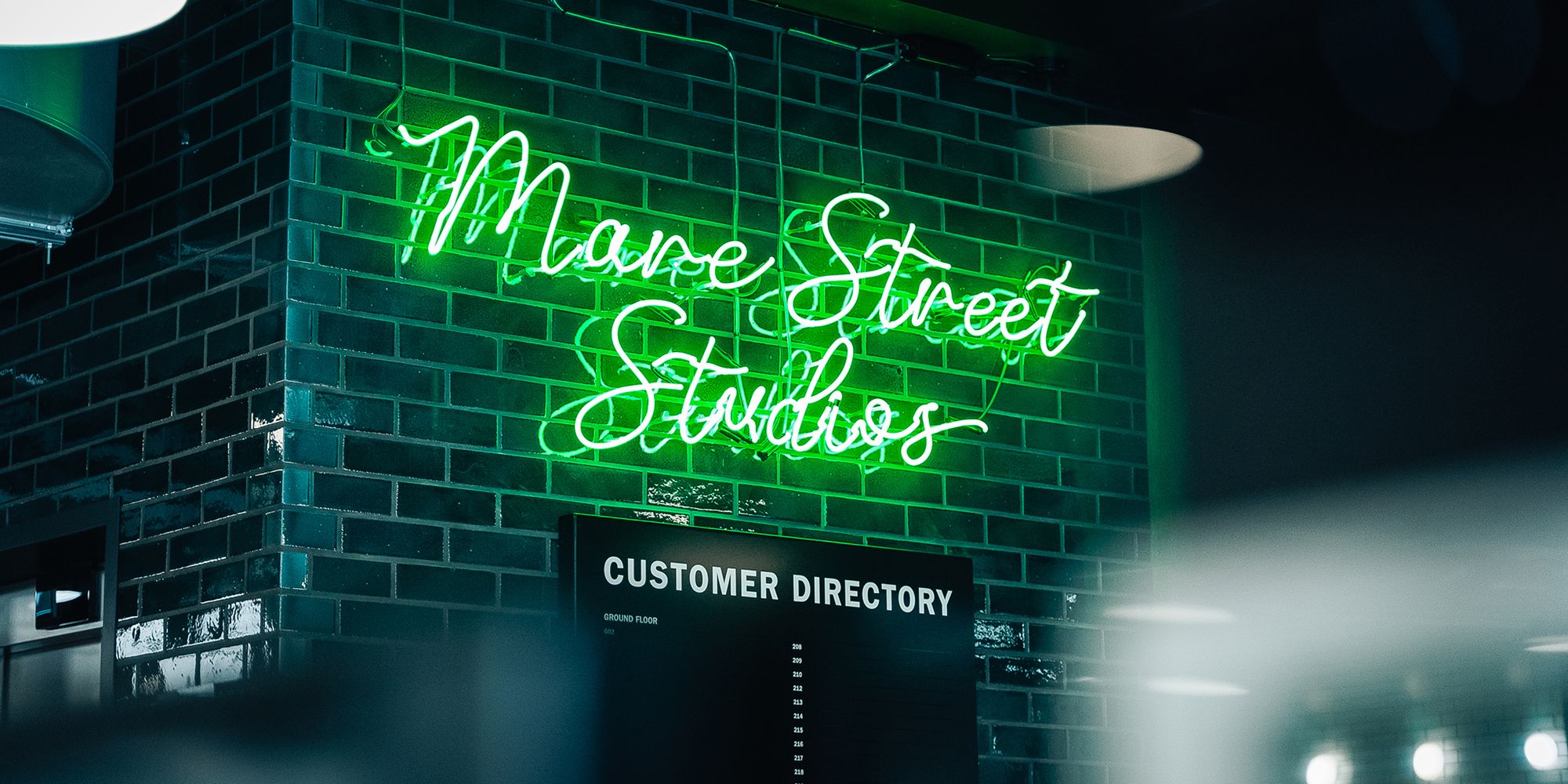 Mare Street Studios Aged walls, wayfinders and neon lights