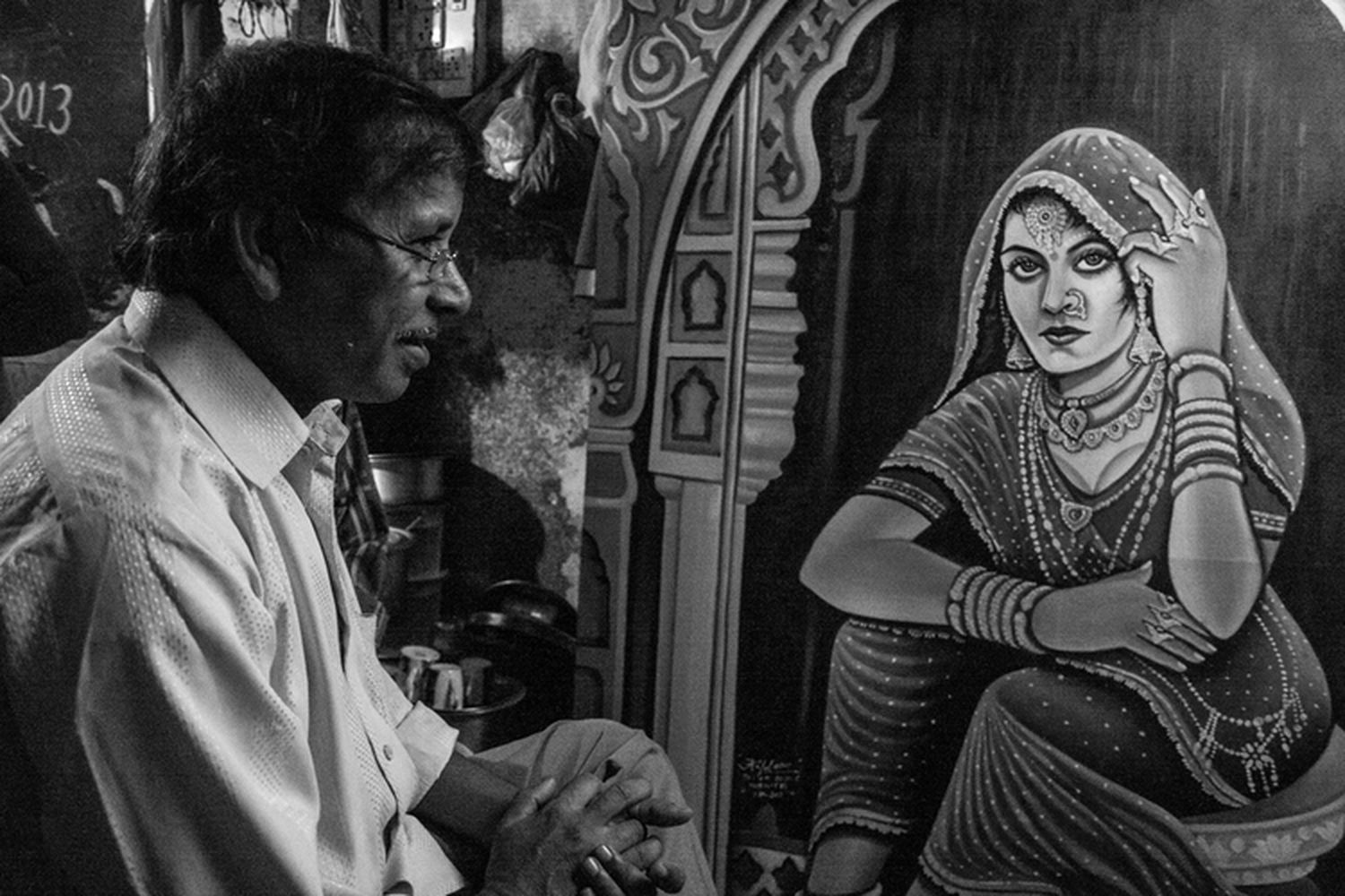 In the walled city of Dilli 6, down a maze of streets brimming with heady spices, Kafeel Ahmed Ansari welcomes us into his two by two metre sized room with plastic cups of fizzy orange Mirinda, introducing us proudly to family members like his son. Surrounded by life size canvases and piles of poster rolls, we huddle together and talk in Hindi, the only language aside from painting that he knows.