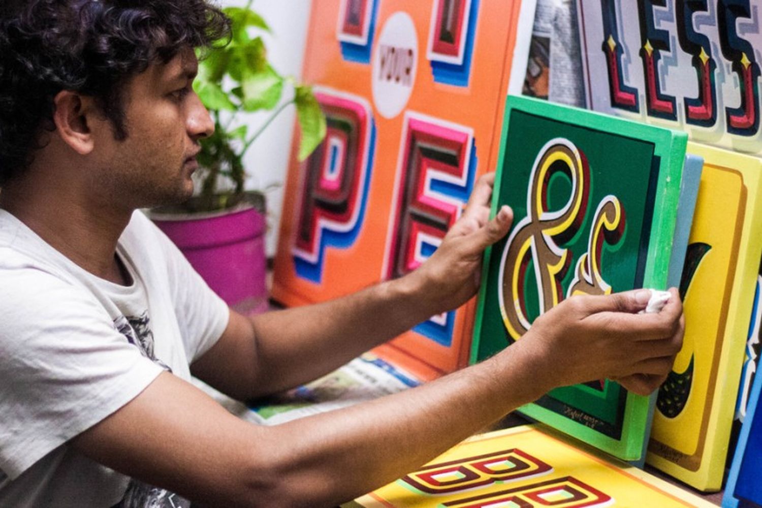 Delhi’s shopping hotspot, Hauz Khas, is bustling with the young and on-trend. Away from the hubbub, up a steep flight of stairs, lies the HQ of handpaintedtype.com – the virtual home of an ancient art form.