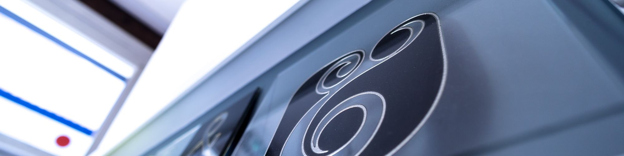 Logo/lettering - pick from laser etched, vinyl print on reverse or cut vinyl on the face, 3D acrylic or metal branding, and last but not least hand painted with or without 23 ct gilding.