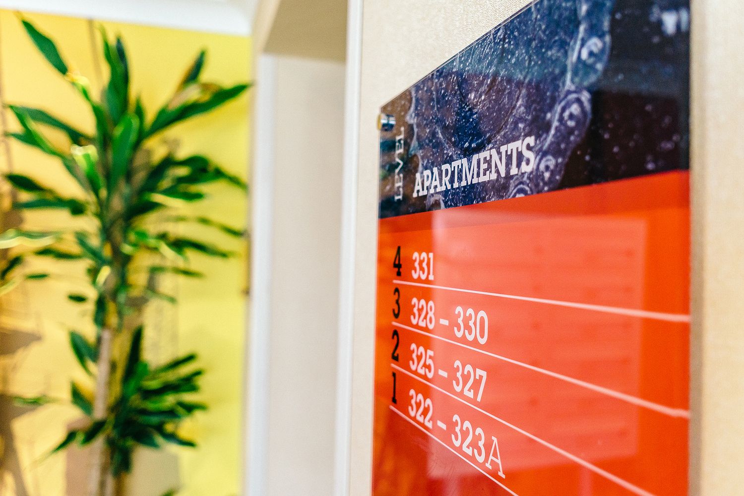 The sign hangs vertically from stand off spacer fixings - these tend to be in a satin finish for a high end aesthetic, and make life incredibly easy when information needs to be updated as they are very easy to remove and reinstall.