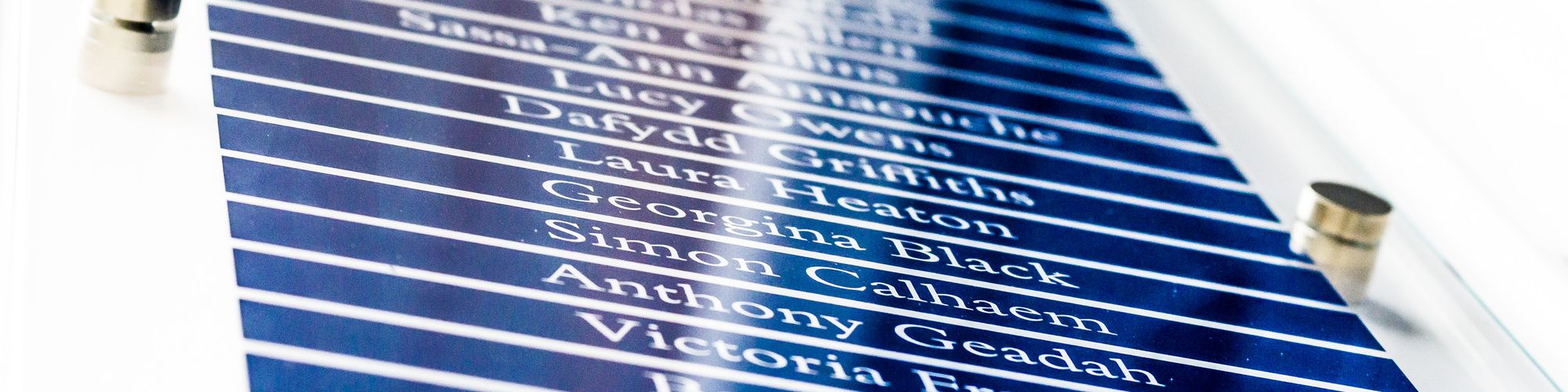 Now we simply print out the list and apply it to the back of glass, which is then affixed to the wall outside of each chamber using minimalist stand off fixings, for a clean look that stays true to the classic style of the buildings.