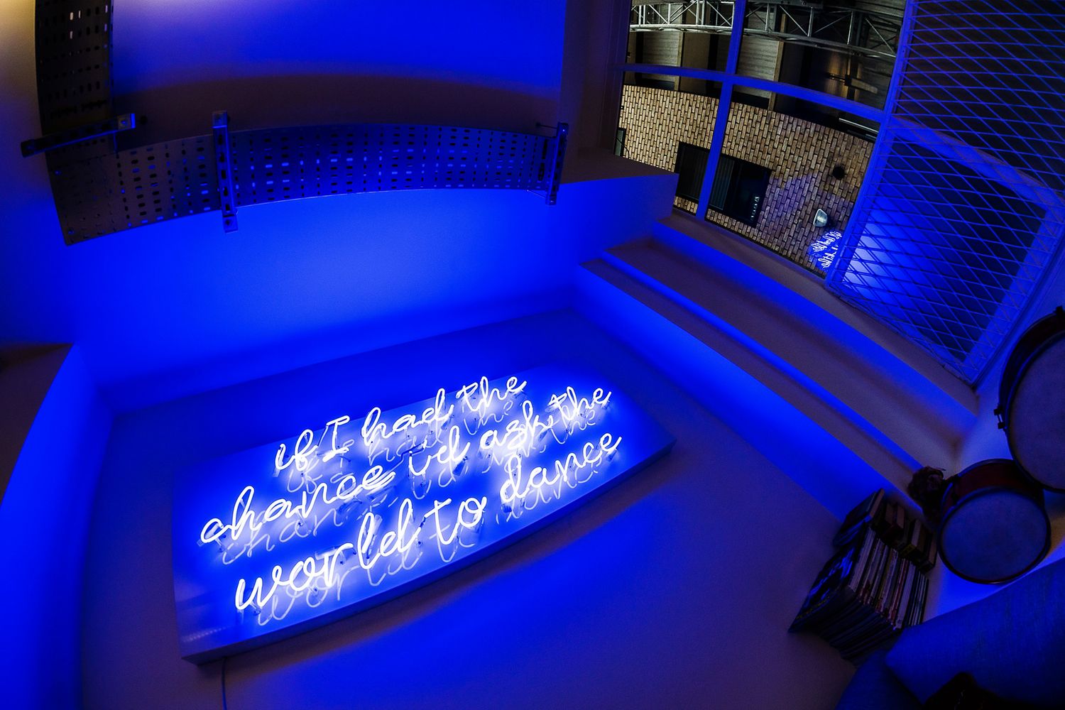The brief was left wide open for interpretation – take our handpicked quote ‘if I had the chance I’d ask the world to dance’ and use its whimsy to bring a little bit of nightclub bling or jazz bar coolness to our breakout area. Music to our ears!