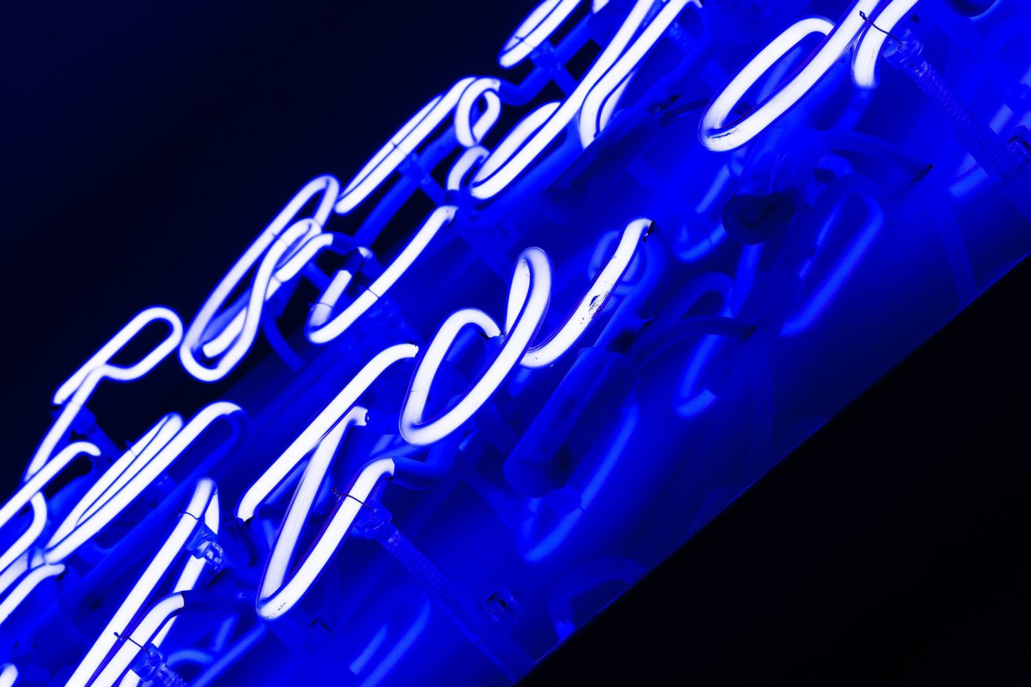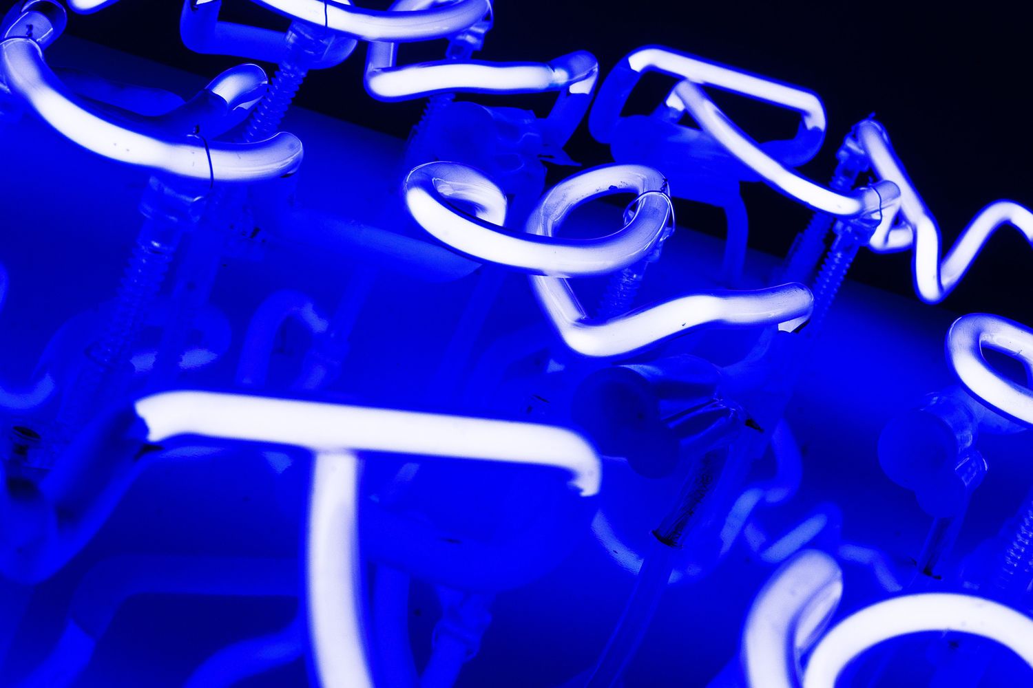 Without that raw look to fall back, we then took to designing the project; powder coating the tray in high gloss white for a clean, contemporary aesthetic that would beautifully reflect the lettering on top when lit. To maximise impact, we chose to build the piece in classic ‘super blue’ – a neon colour that achieves hypnotising levels of saturation when pulsing with electricity, and powers up even more in the dark.