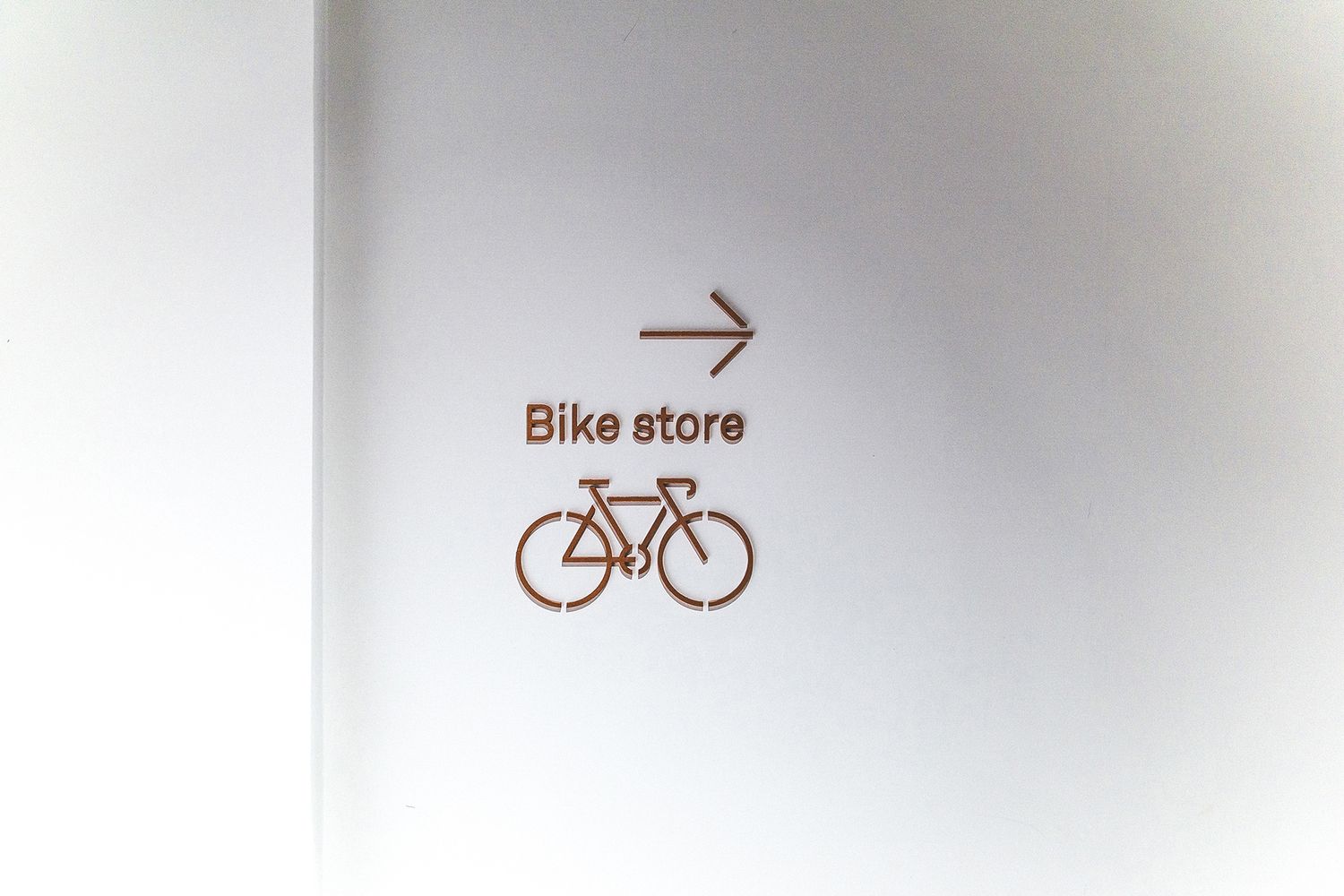 We then affixed lettering, arrows and pictograms directly onto our canvas of pillars, encasing the signs with wraparound frames, hugging each post at a 90 degree angle. Implementation proved a little tricky, as some of the facets of the pillars weren’t straight but we managed to get around that by adjusting the frames. In the end, the idea for this shared office signage was a pretty simple but visually original one, resulting in a strikingly minimalist wayfinding system that’s fitting for such a clean space.