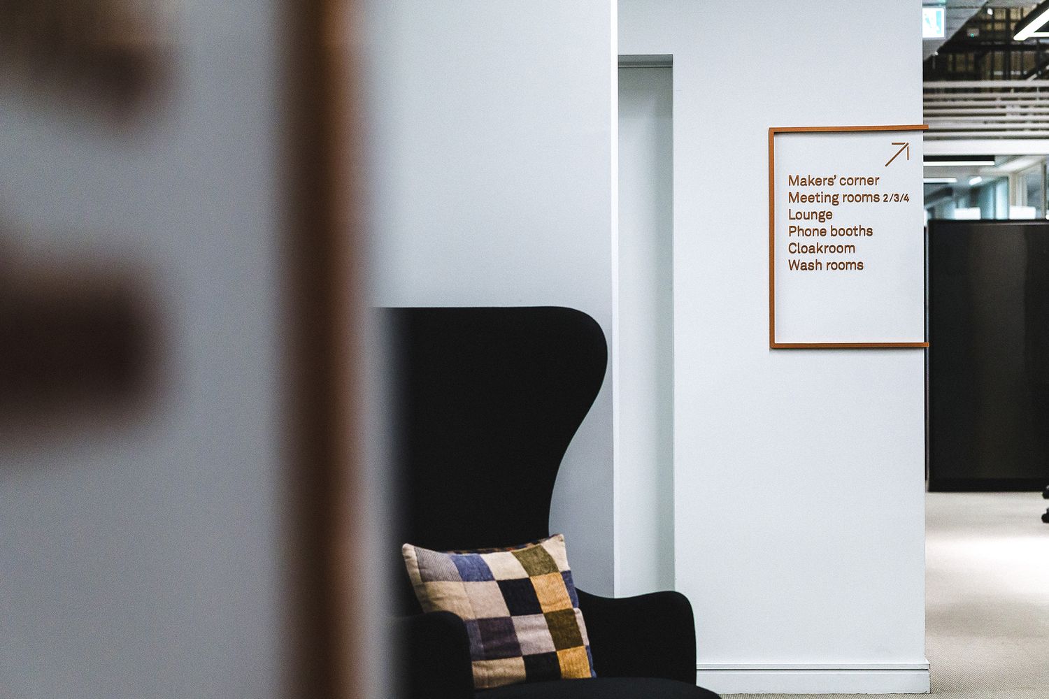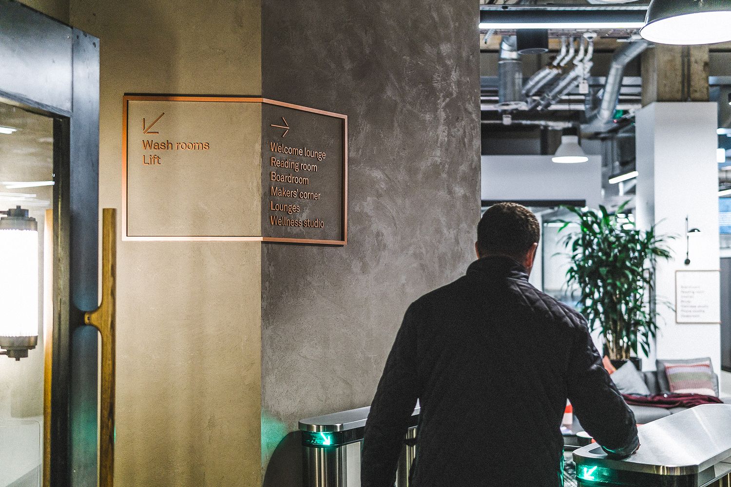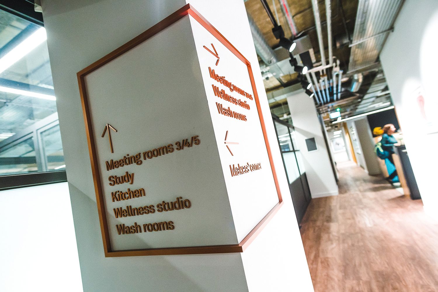 Aware of our impact on Workspace, Fora connected with us through a design group to act as their shared office signage specialists. They asked us to come on board and help them to completion. Naturally we carried out a recce before opening, and one of the main points of interests was the lack of walls in this truly open plan space. We were intrigued by the chance of creating a wayfinding system using just a network of pillars!
