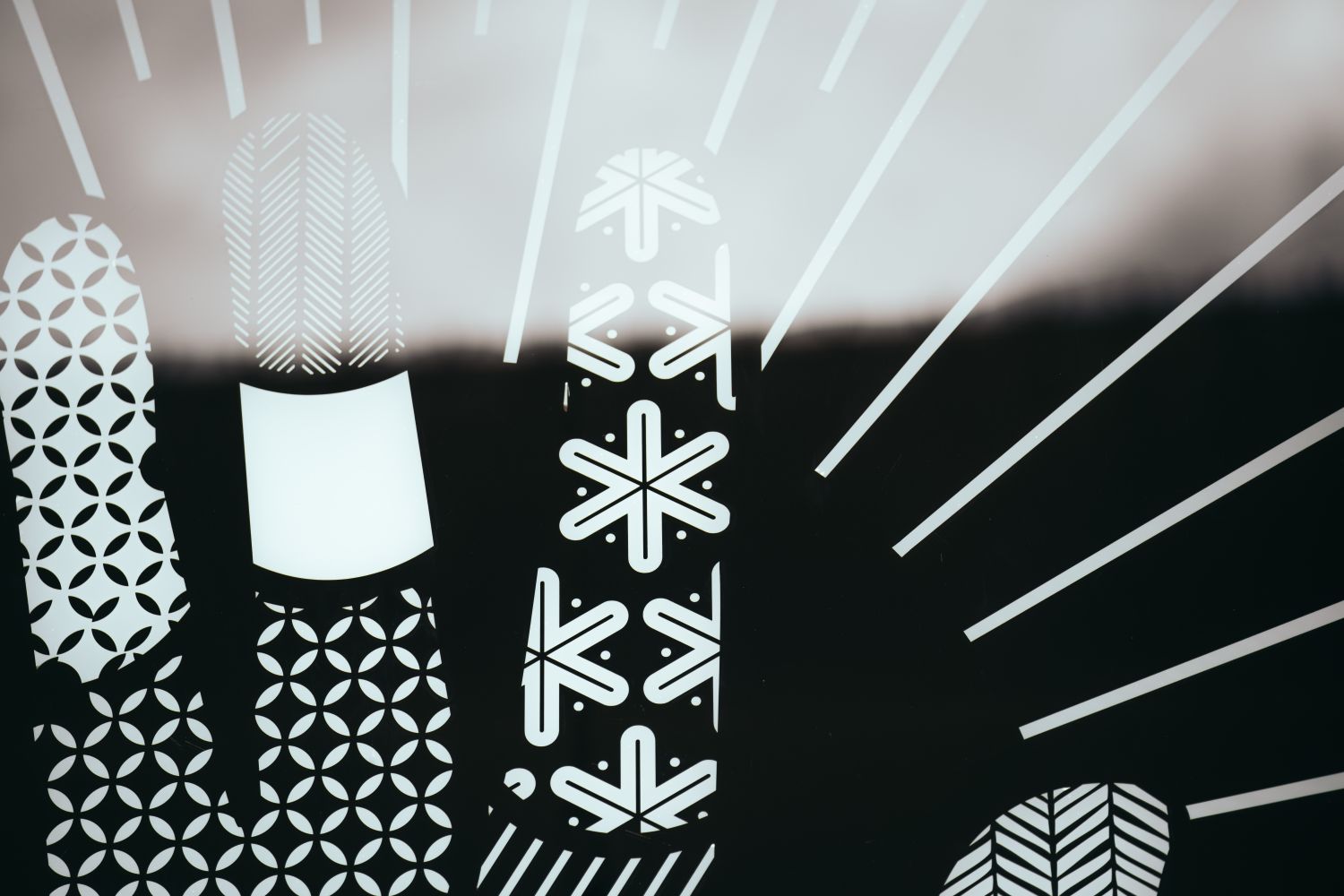 The work was created using precision-cut vinyl with a reverse adhesive application, applied internally to protect the artwork while intending to seamlessly integrate it with the glass facade. This is a method that ensures crisp lines and stand-out clarity, allowing the intricacies of the sign - such as the radiating beams - to be highlighted in varying lighting conditions.
