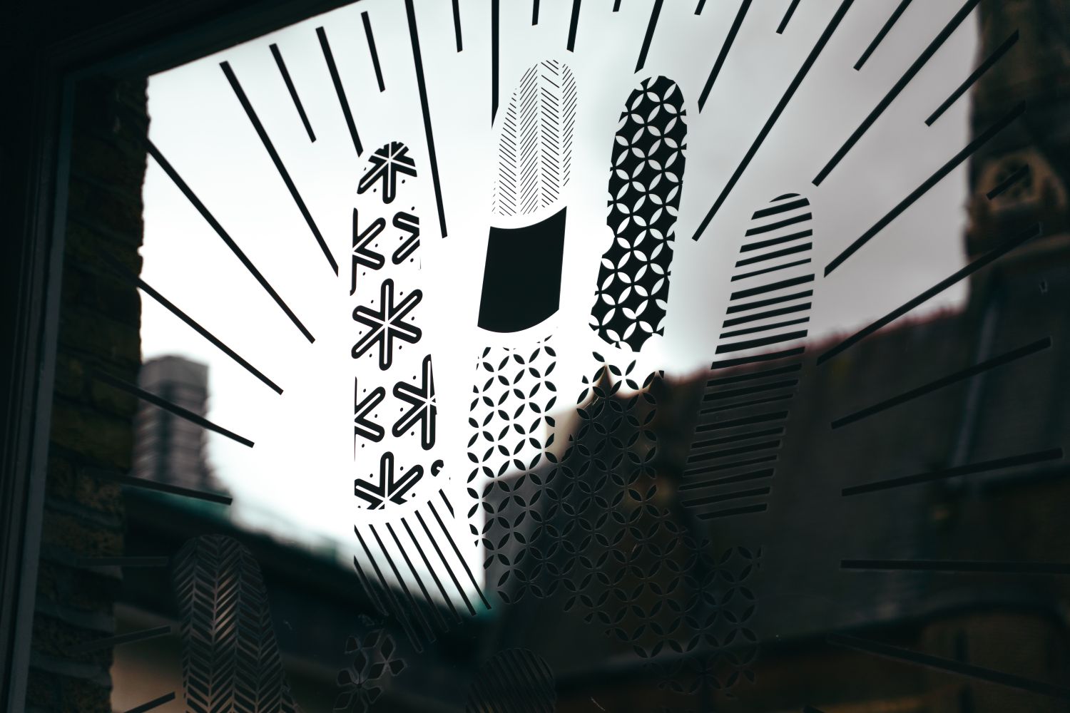 This window concept loosely draws from the eclectic artistry of Shoreditch and the surrounds - from the Bangladeshi patterns of Brick Lane to a kaleidoscope of graffiti, and the layers upon layers of poster campaigns wheat pasted across the local tapestry. With its graphic style, this print-like vinyl aims to echo something of the area’s morphing wall-scape, bringing a semblance of its fleeting nature while capturing a genuine sense of place.