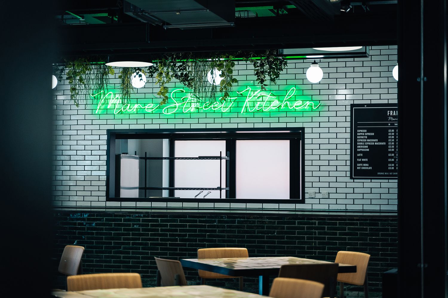 Mare Street Studios Aged walls, wayfinders and neon lights