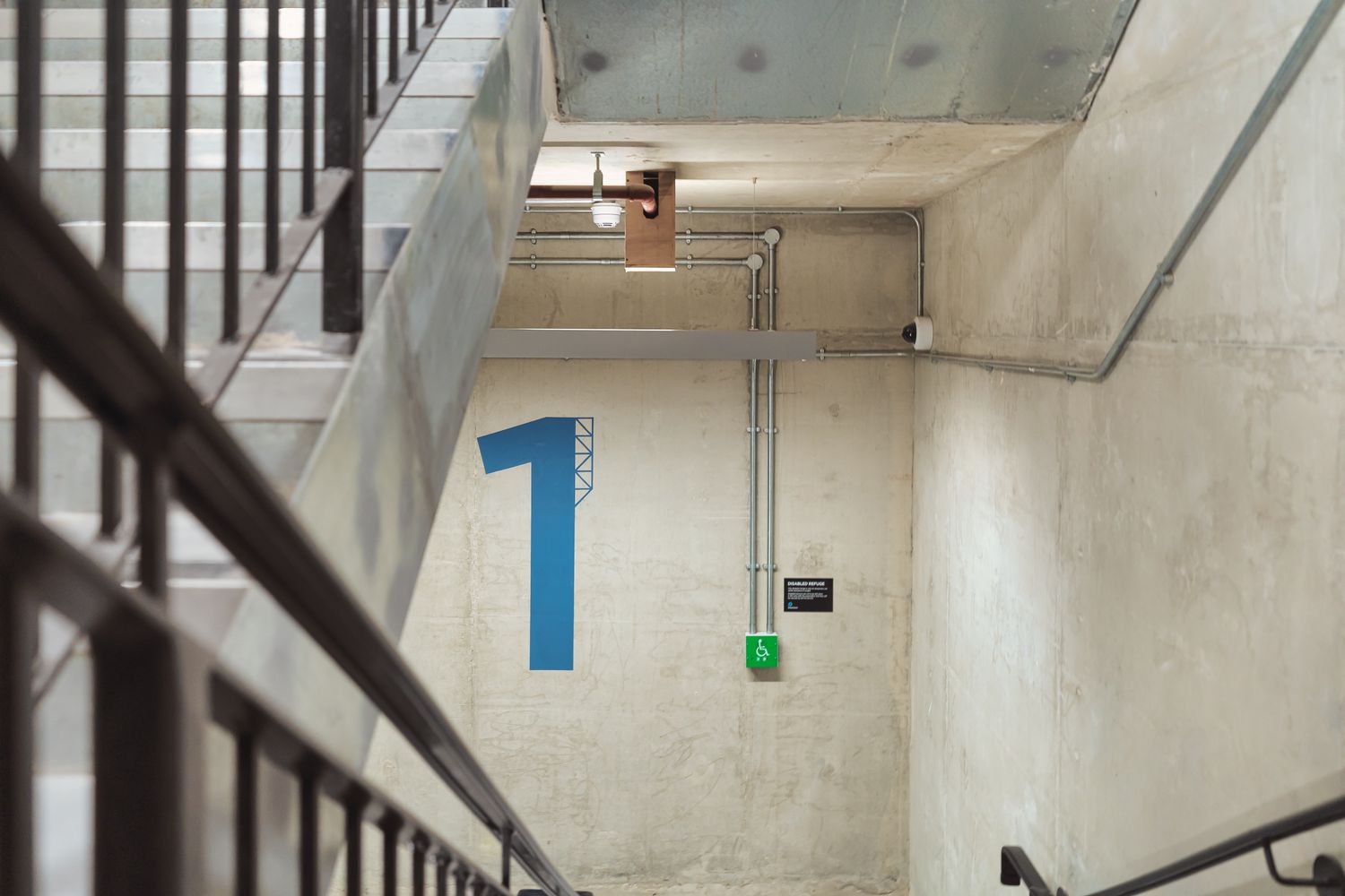 Commonplace signs are given meticulous attention to detail - from minimalist icons for the projecting room identifiers, sensitively designed to suit the contemporary aesthetics of the space they label, to the large geometric stairwell numbers, produced to complement the ruggedness of the concrete walls and steel steps. Crafted from quality materials and installed to a high spec finish, even the most functional signage is carefully considered and executed with the Mirror Works aesthetic in mind.