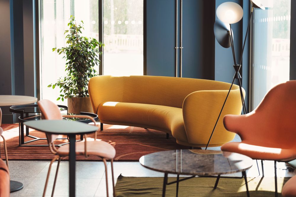 ...On the ground floor a sunny yellow welcomes you; from the centre manager’s office cool blues ground the area; whilst rich wine tones create comfortable lounge zones.
