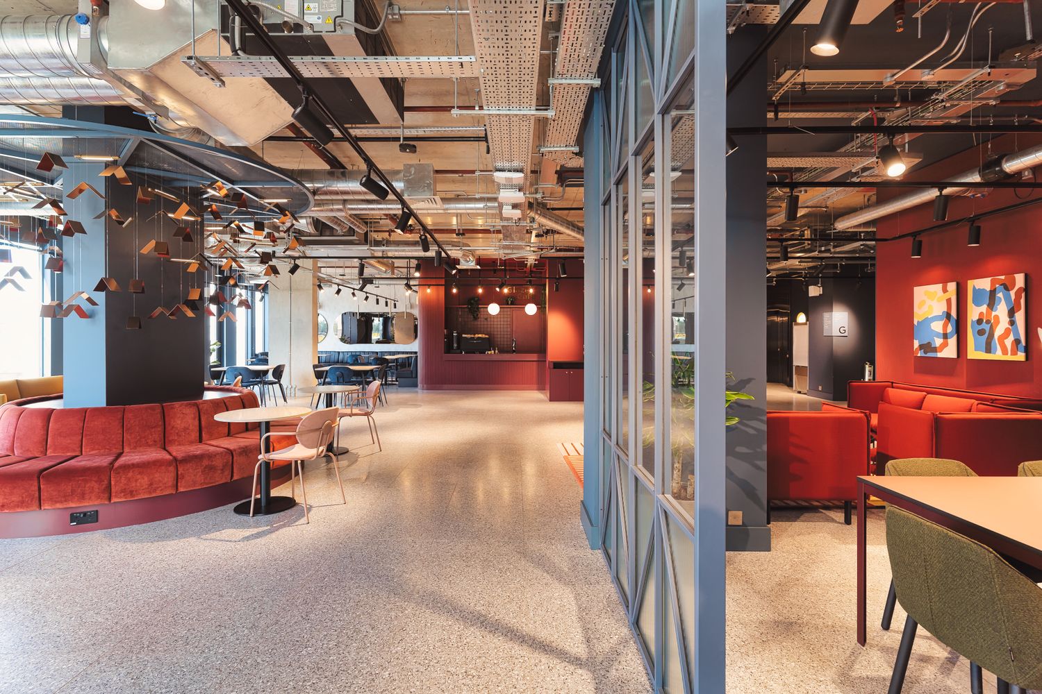"To encourage community and bring teams and different business together so we created a dynamic, flexible space zoned with colour.