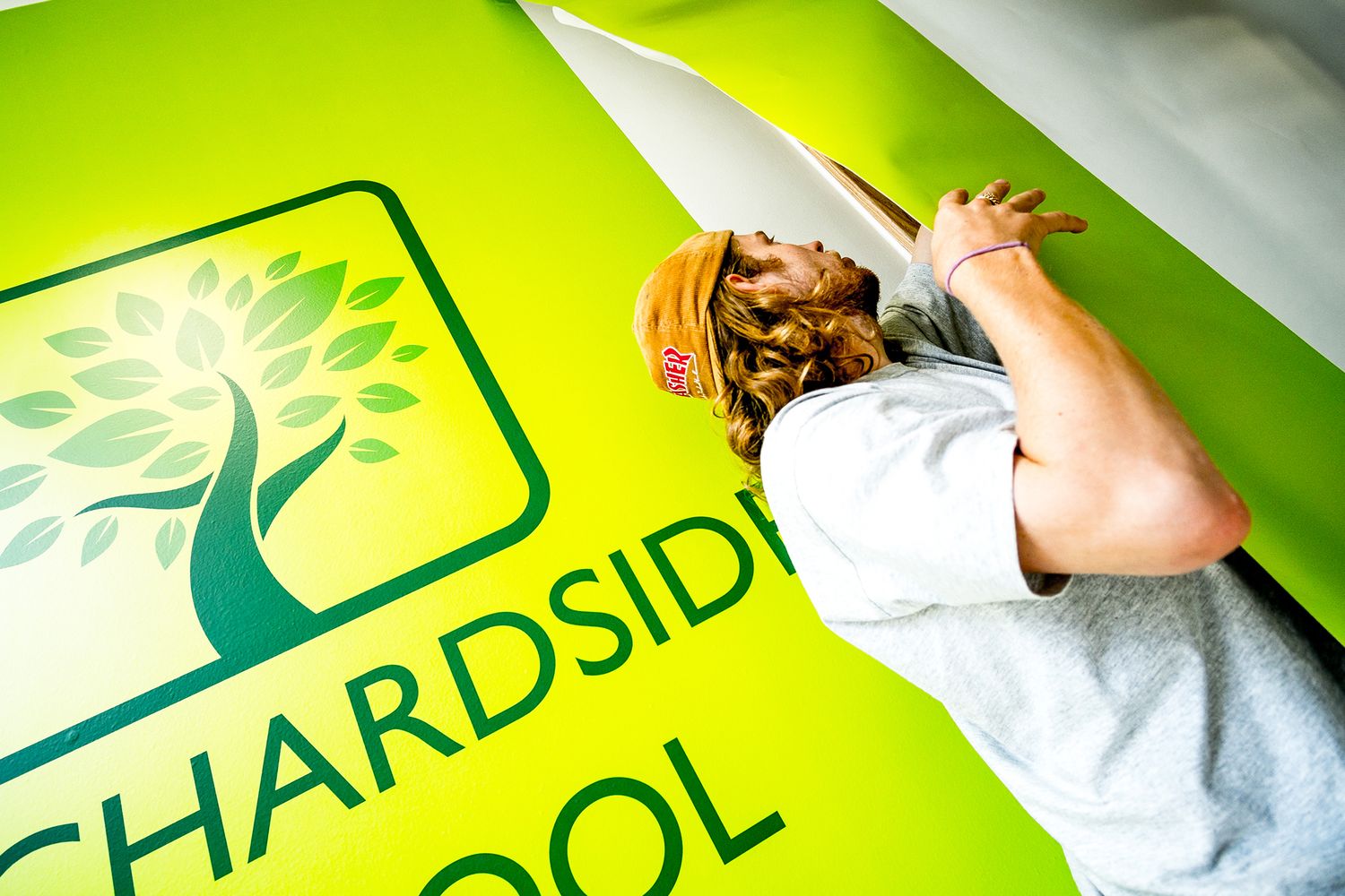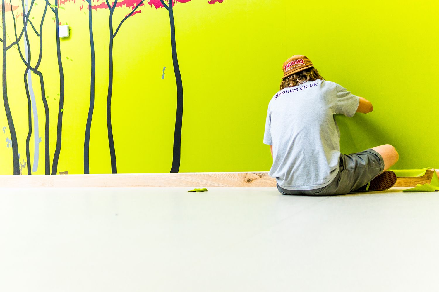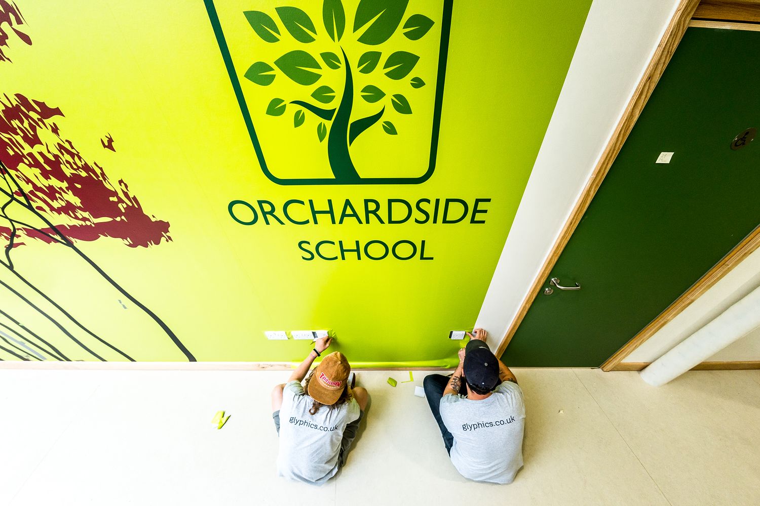 Orchardside School Bespoke vinyl wallpaper and glass manifestation