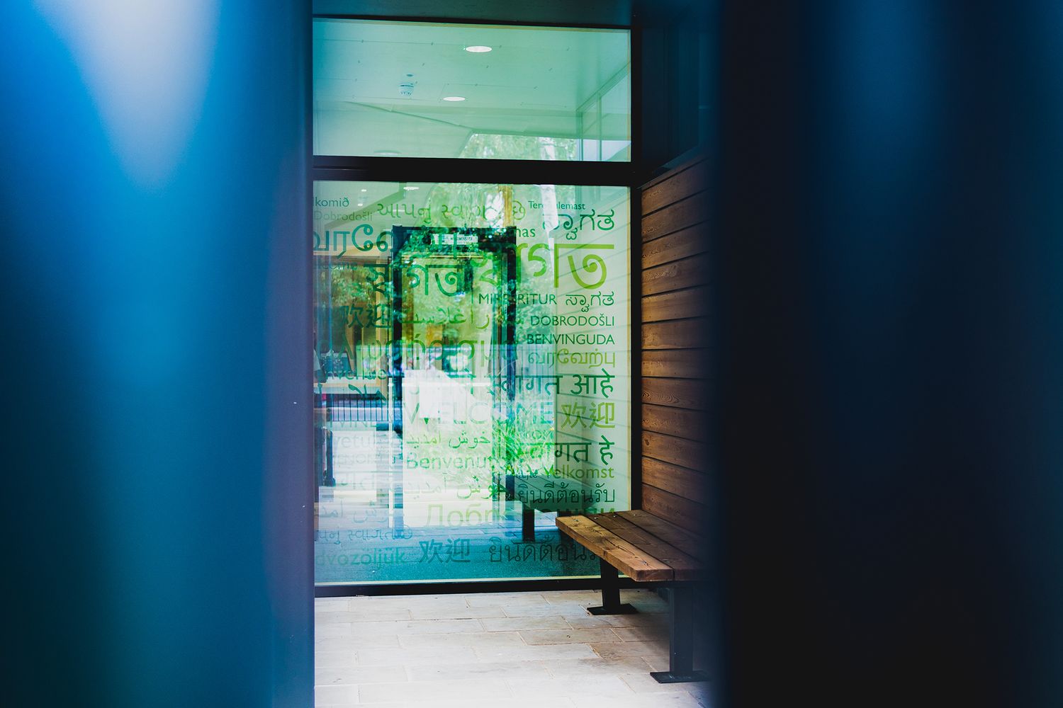 First off, our designers kitted out two floor-to-ceiling windows at the school’s entrance with safety manifestations that doubled up as displays. They decided to use a premium printed glossy film as their material of choice, showcasing the school’s tree emblem on the left of the glass doorway, and a word cloud of the greeting ‘welcome’ in multiple languages on the right, to reflect the diversity of the school.