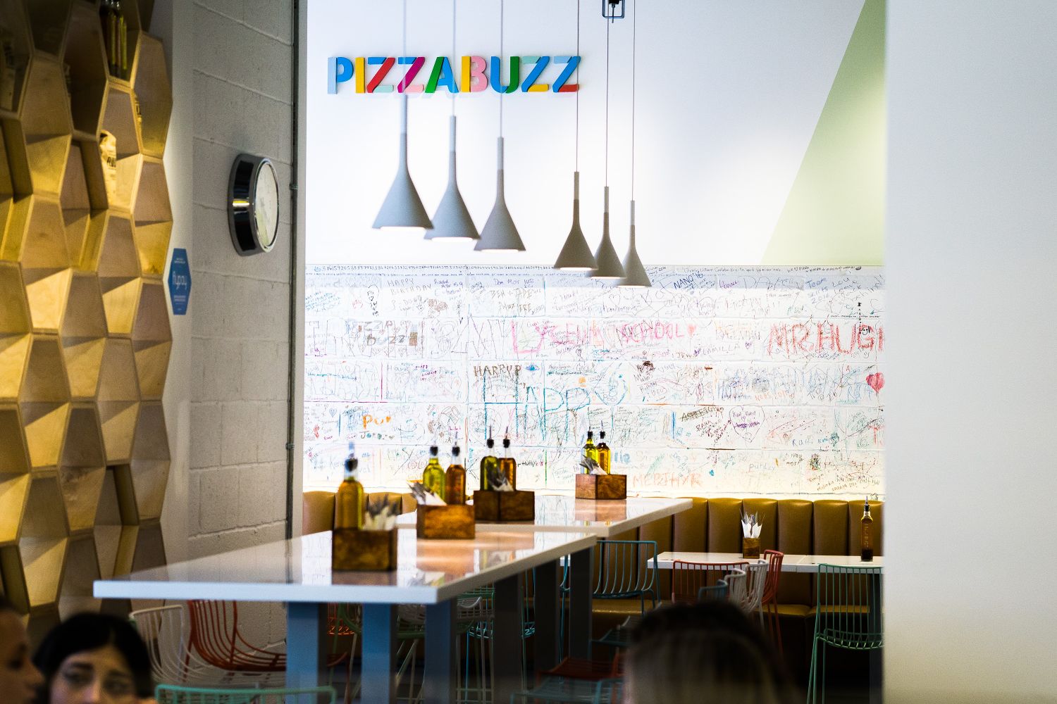 Pizzabuzz Fitting out a restaurant with painted metal letters