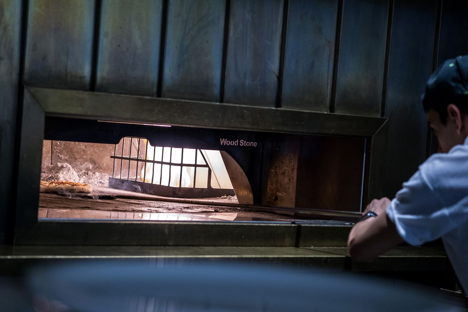 The creative director asked us to help transform it into a happy dining area full of colourful decorative touches, offset by rip-roaring wood fired ovens.