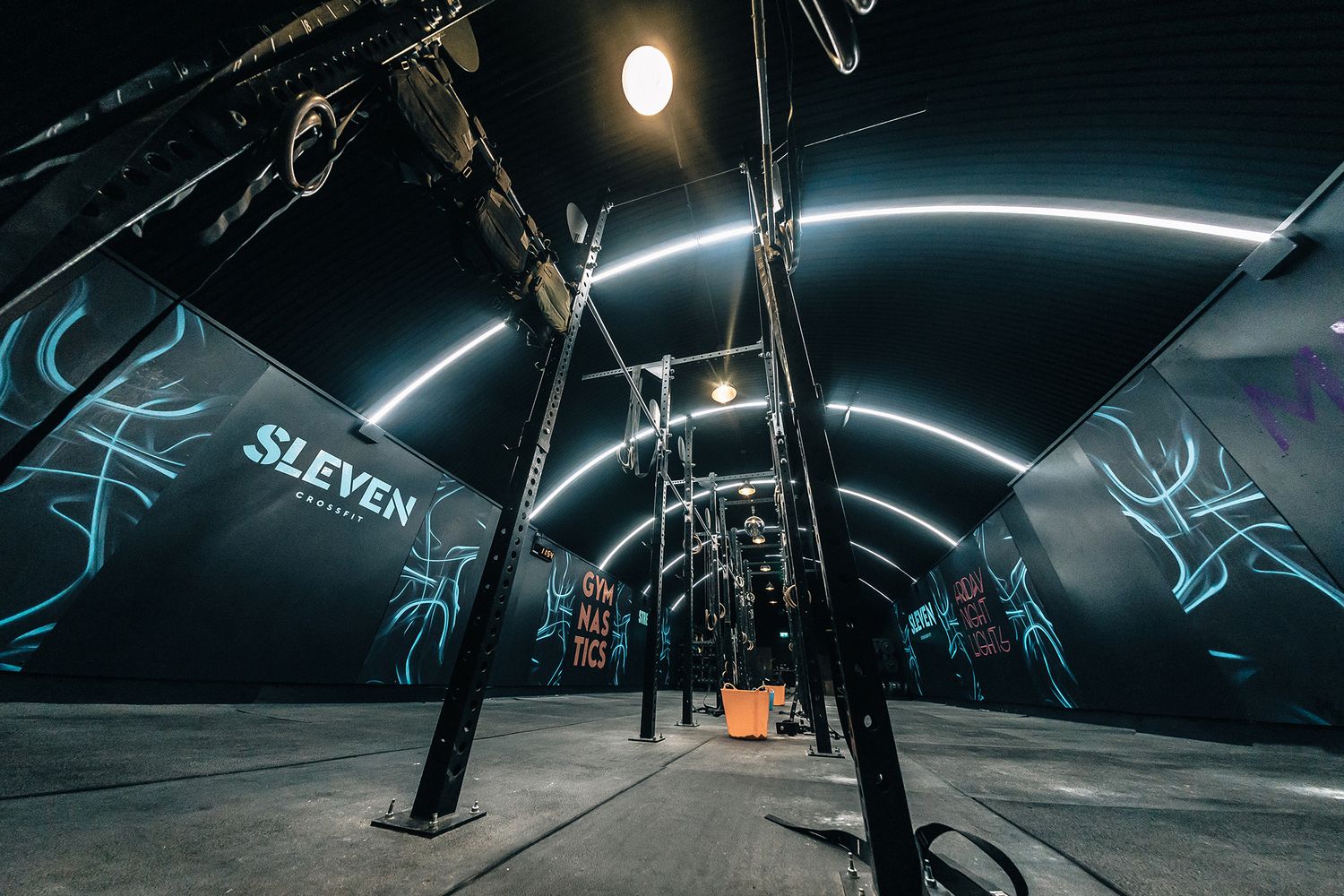 Sleven’s workouts are all about training in groups, building strength in a range of movements from gymnastics, weight lifting and rowing to running, cycling and skipping. All the focus is on pushing each other forward, including the interiors.