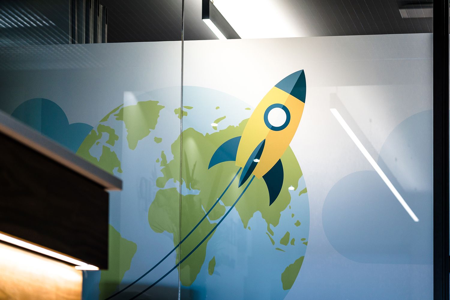 The client was really happy with the end product too, and went out of their way to mention our customer service, and entrusted us with a full corporate kit out with a fun, ‘out-of-this-world’ twist. The Hackett Group strives to launch the performance of its clients into another orbit, and they wanted to share this message through a visual representation for the internal window panels of their offices.