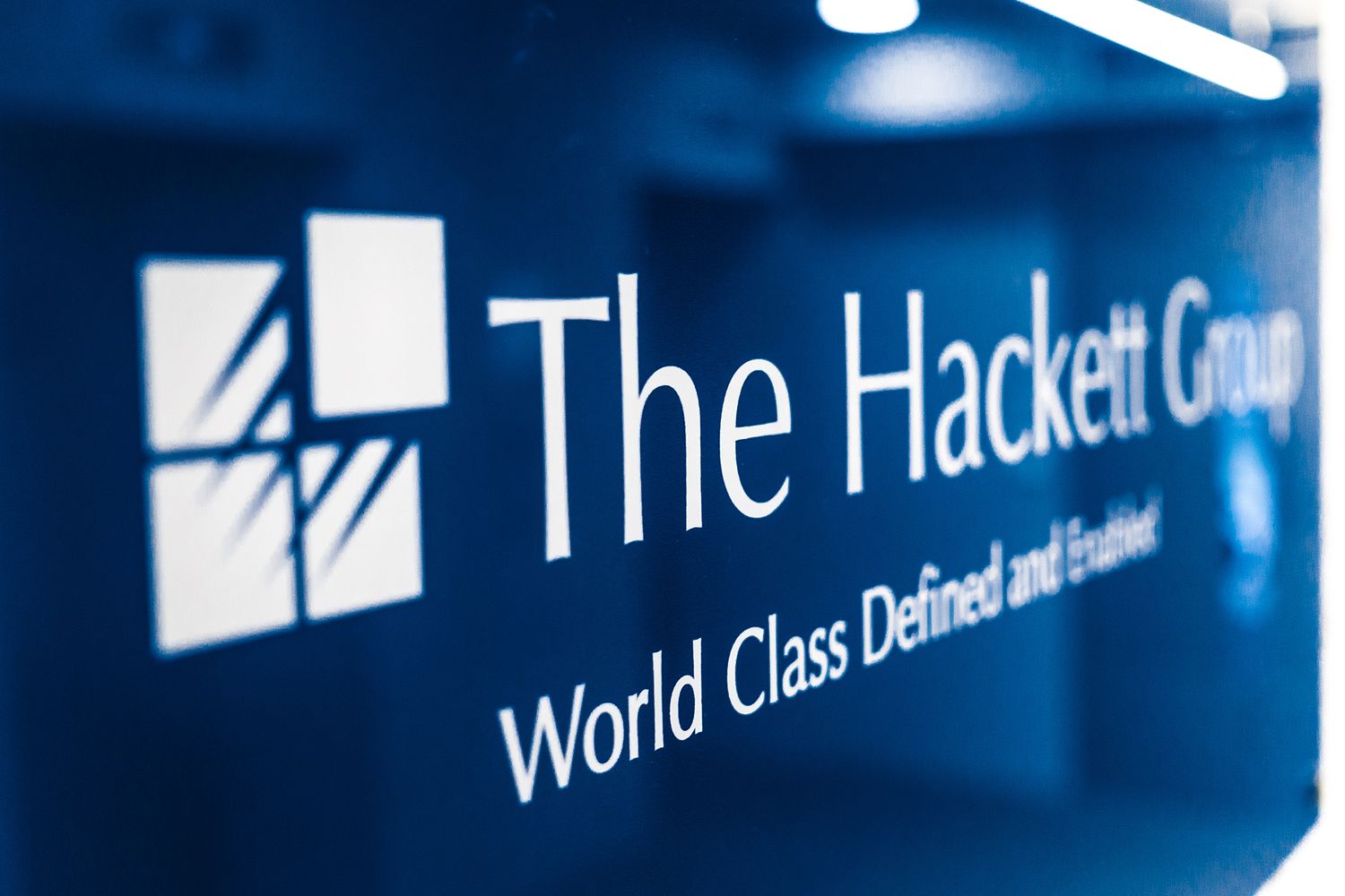 We set about producing and installing wall-to-wall window manifestations for the meeting rooms, and implemented them within two days, and also provided The Hackett Group with a few acrylic plaques to match the original logo we’d made earlier.