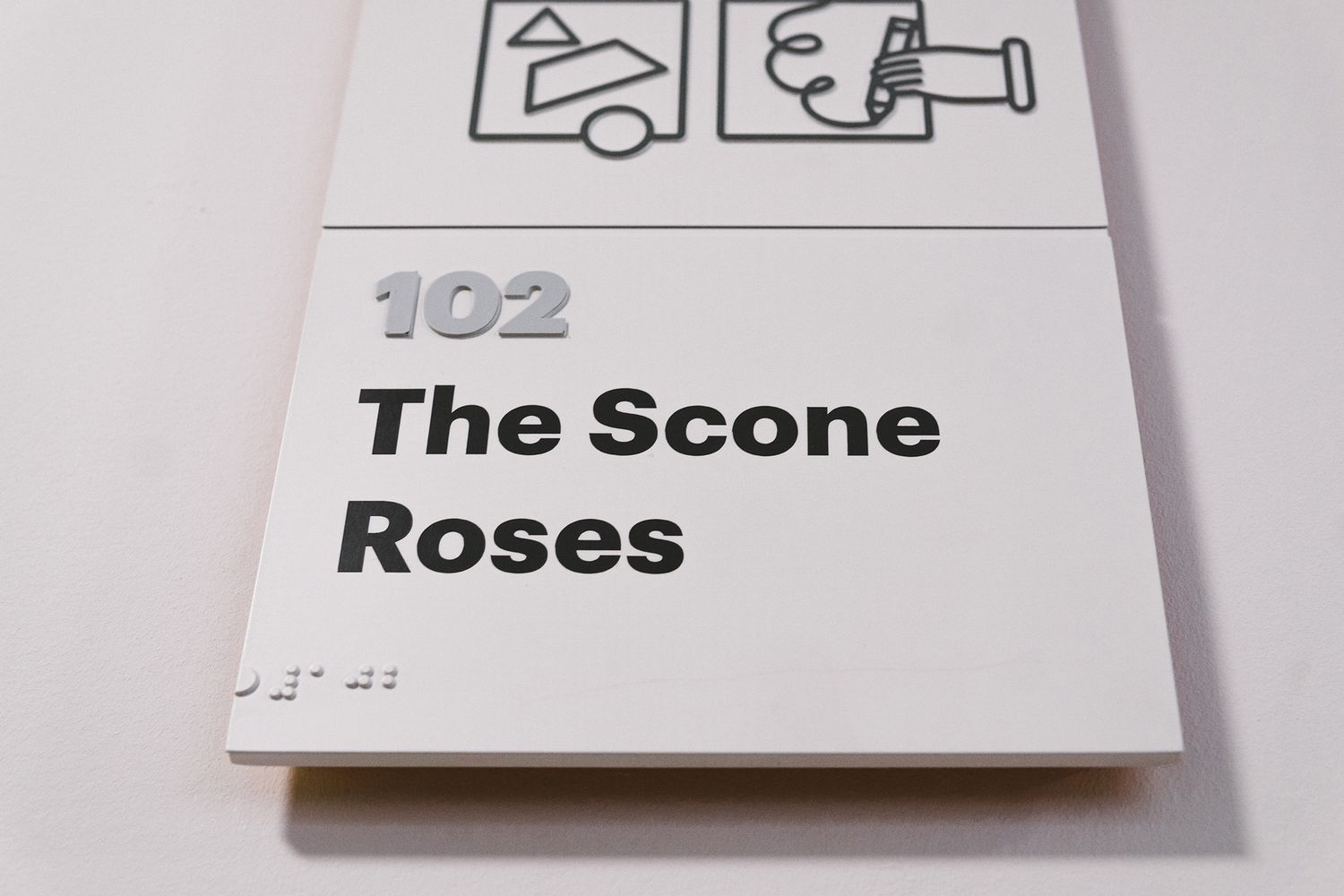 Thirty-one signs, across two floors. The size for each sign is 165mm x 286mm overall. 5mm thick foamex with two 1.5mm thick photopolymer sections have been applied to the face. These photopolymer sections have been reverse-etched by 1mm, leaving the braille, icons and room number proud by 1mm. Along with the protruding graphics, the quirky room names have been silk screened on, with all featured colours tone matched to be perfectly on-brand.