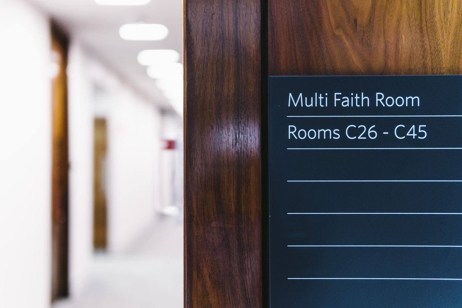 HSF signage is a journey from the exterior, main reception and up through the building to their offices, winding its way through reception graphics, glass manifestations, door signs and wayfinding. In a smart move, the new HSF logo was a simplified icon of an iris that could be easily reworked to fit with all of these different environments – presented as a single colour or in the preferred full colour version made up of multiple tones of blue.